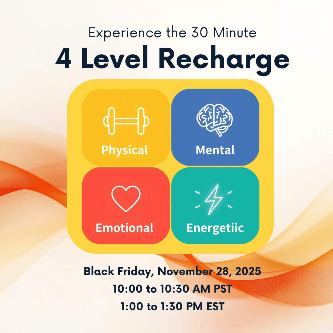 This 4 Level Recharge is your 30-minute upgrade. It's a direct, embodied experience — a taste of my powerful process for life energy activation.